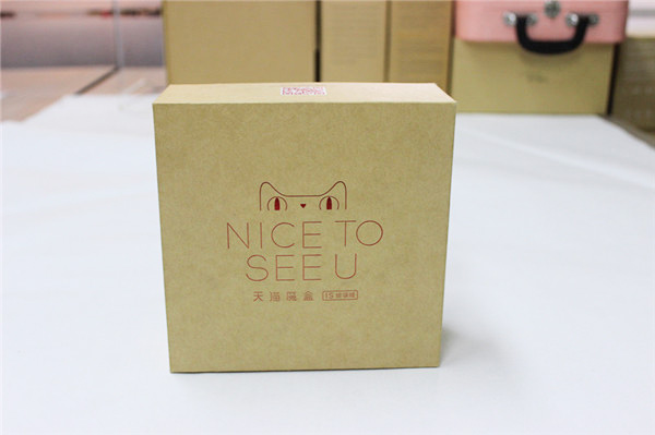 在这款包装中,牛皮纸天地盒的天盒与底盒高度一致,这极大的增强了包装的抗压强度。